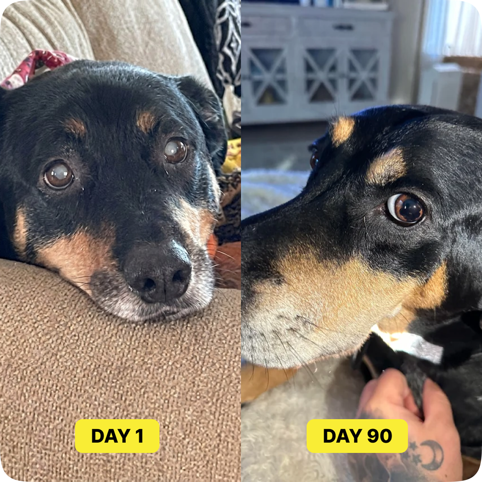 Weeks 1–2: Your dog adjusts to the routine. Nano-ingredients begin reaching eye tissues and building up in the system.